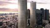 また頂部は「翼を広げるクラウン」を持つ象徴的デザインで、低層は周辺街並みに合わせた素材、高層はガラス主体とする二層性を持っています。