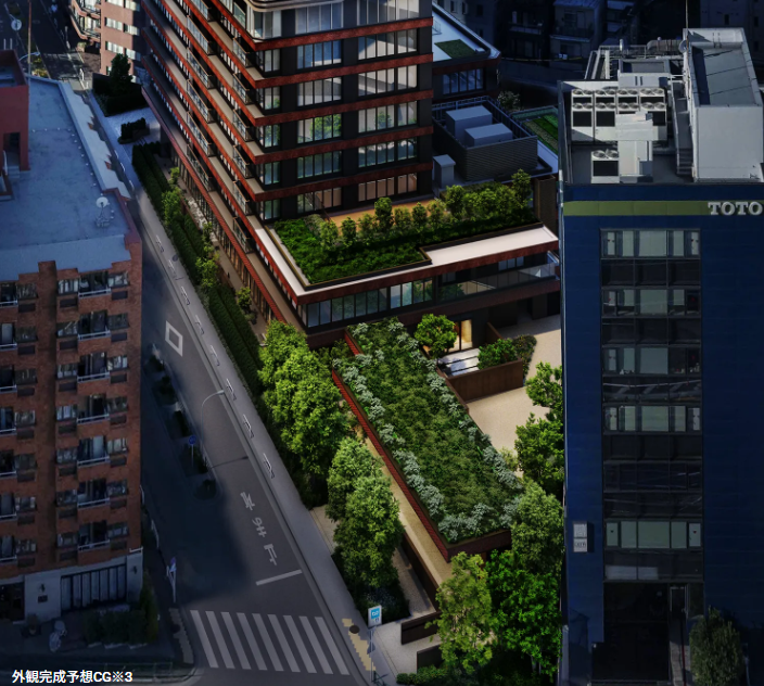 低層は周辺の緑や街並みに調和するランドスケープ設計です。