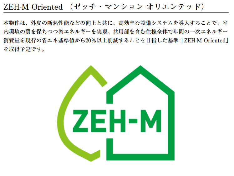 そしてタワマンでは当然のようになっているZEH-M Orientedを取得しているため、平均的な環境性能を確保している証拠となっています。